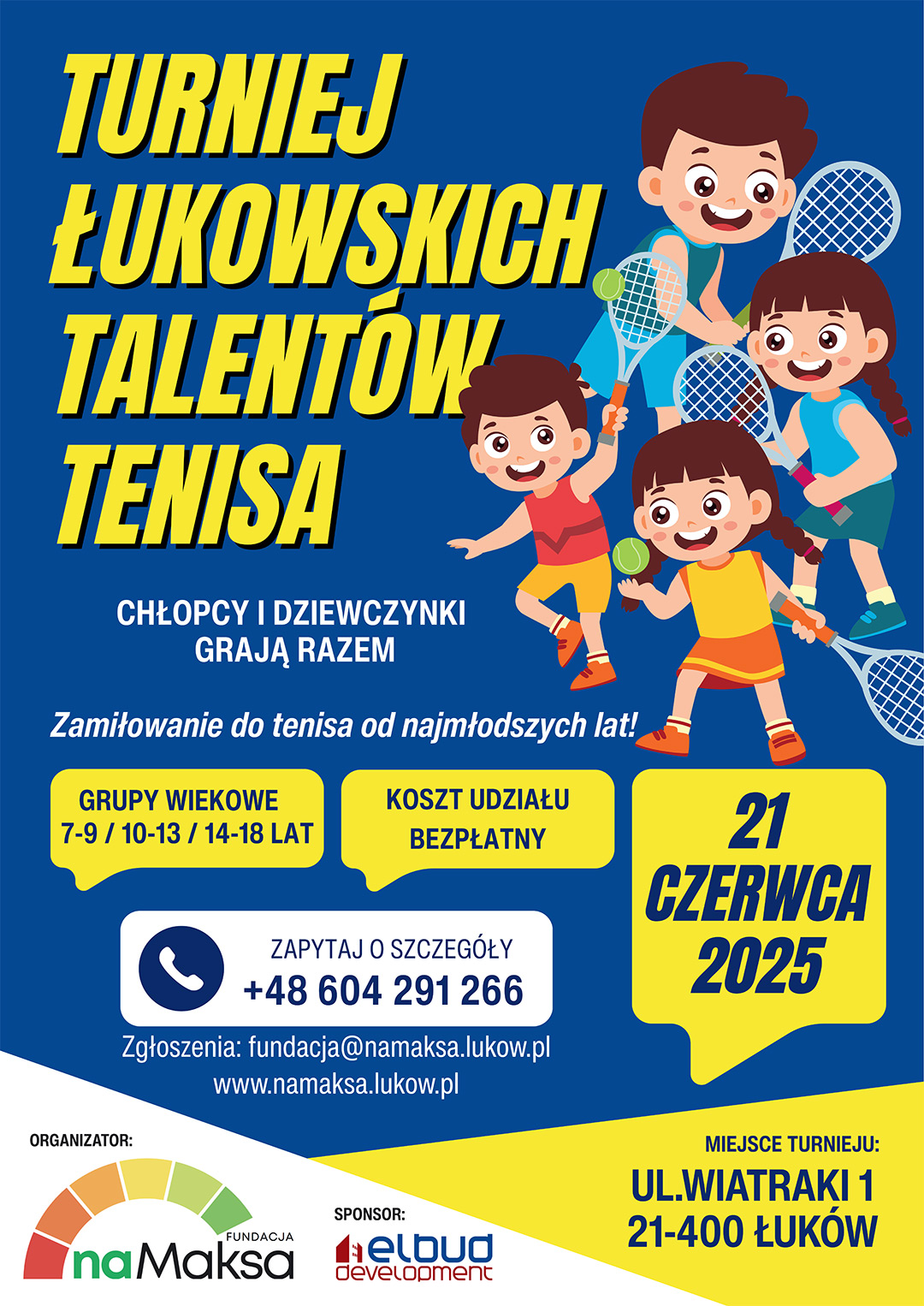 Już 21 czerwca 2025 zapraszamy na Turniej Łukowskich Talentów Tenisadla dzieci i młodzieży!